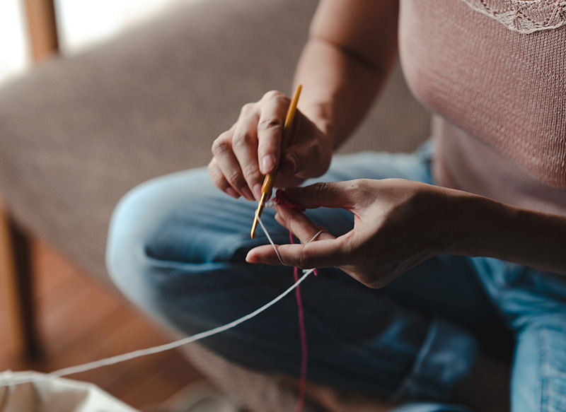 SDGsや福利厚生に貢献するプロジェクトを法人企業様にご提案しています。例えば、着古されたセーターをリメイク・リユースすることもひとつです。個人が持っている想いが集まり、会社全体で取り組めば、サステナブルな社会への大きな一歩になります。また、福利厚生の観点で編み物はうつ気分や不安を和らげてくれます。両手を使った繰り返しの動作は、セロトニンが分泌され精神の安定や安心感をもたらします。手を使って編み作品を完成させることは、報酬系が刺激されやる気や快楽を生み出します。